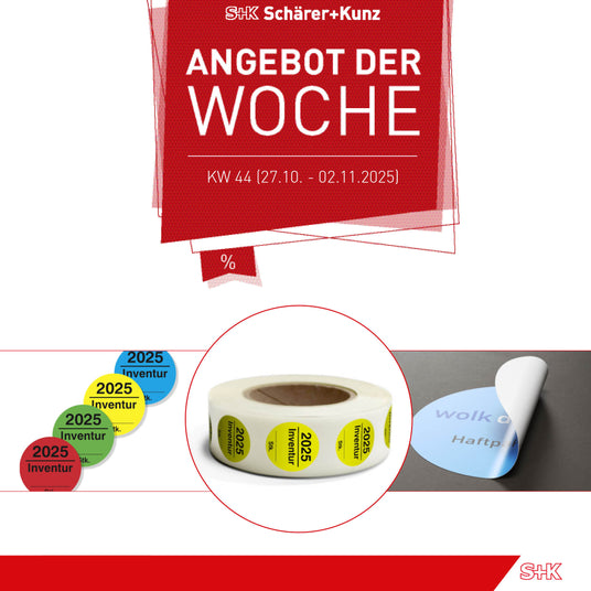 Hier finden Sie exklusive Aktionen, attraktive Rabatte und unser Angebot der Woche – nur für kurze Zeit und nur solange der Vorrat reicht. Ob Sicherheitskennzeichnung, Markierungsprodukte oder Zubehör: Bei uns sparen Sie clever und gezielt.
